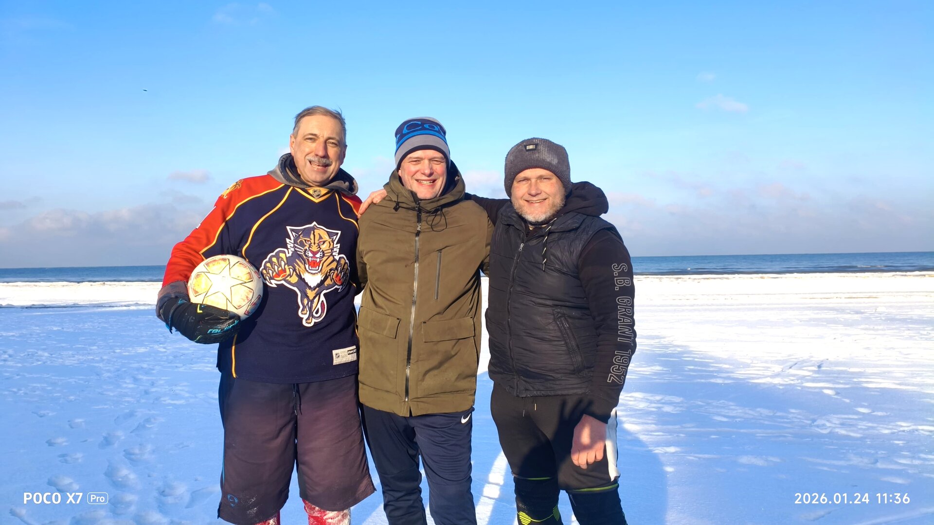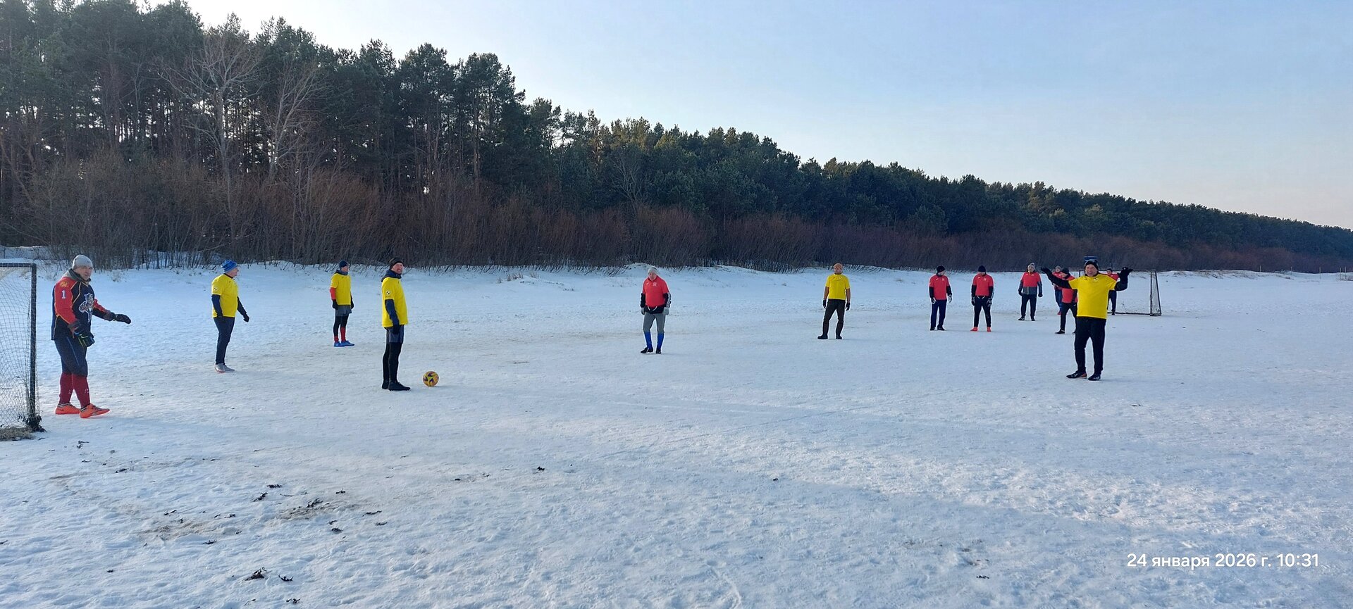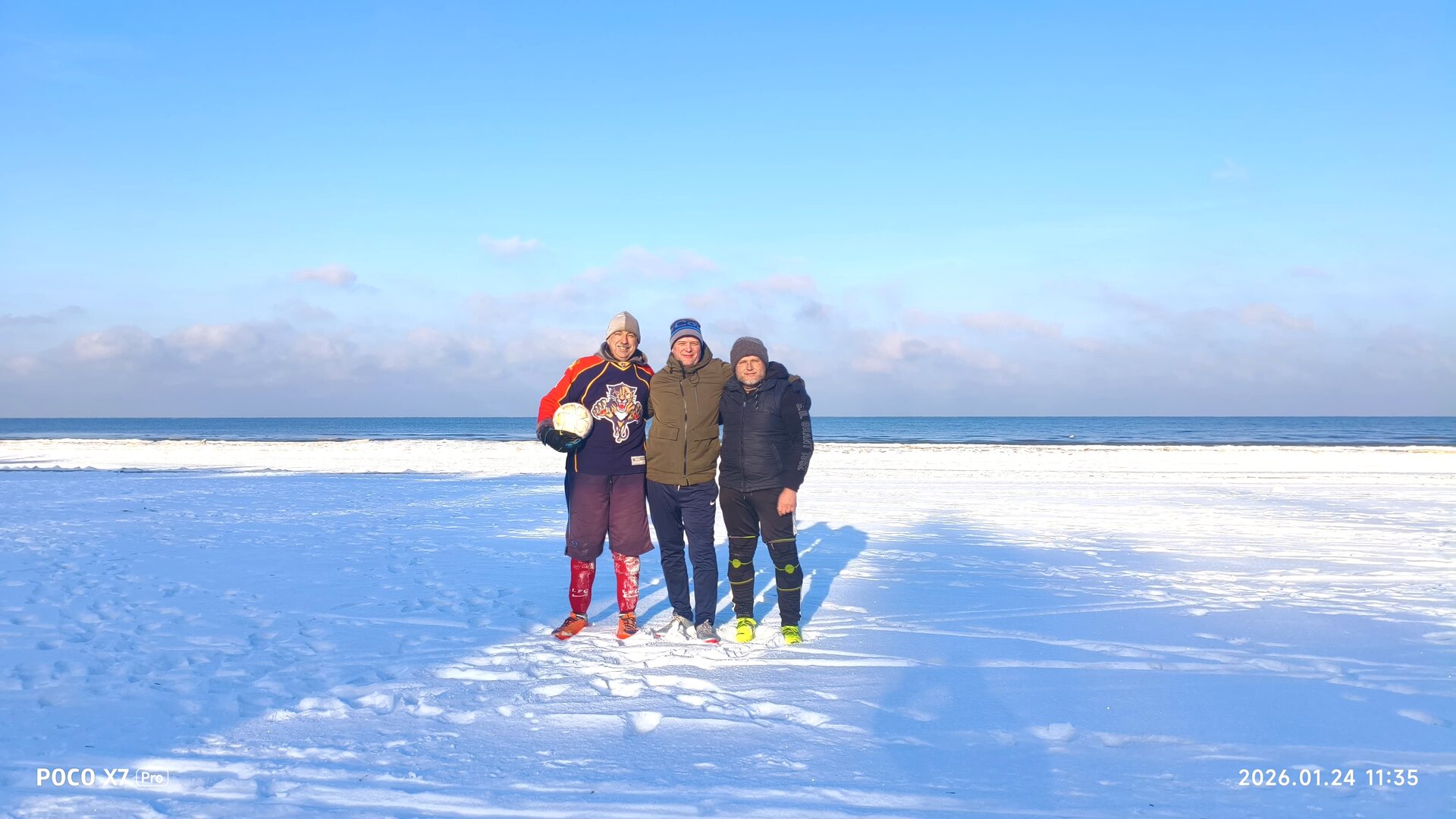 Погода была по-зимнему отличной — юрмальские небеса и в этот раз оказались благосклонны к футболистам «Субботней лиги». Несмотря на мороз, хорошенько утеплившись дома, на поле пришли 14 человек. Среди них неожиданно оказался решивший открыть для себя дубултский сезон-2025/26 Артём Каплюк — одевшийся не только тепло, но и стильно, да так, что ни один присутствующий не смог отвести взгляд от его современных зимних бутс.